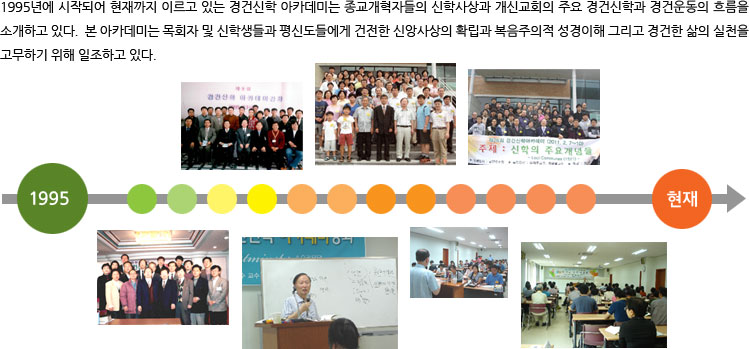 1995³â¿¡ ½ÃÀ۵Ǿî ÇöÀç±îÁö À̸£°í ÀÖ´Â °æ°Ç½ÅÇÐ ¾ÆÄ«µ¥¹Ì´Â Á¾±³°³ÇõÀÚµéÀÇ ½ÅÇлç»ó°ú °³½Å±³È¸ÀÇ ÁÖ¿ä °æ°Ç½ÅÇаú °æ°Ç¿îµ¿ÀÇ È帧À» ¼Ò°³Çϰí ÀÖ´Ù. º» ¾ÆÄ«µ¥¹Ì´Â ¸ñȸÀÚ ¹× ½ÅÇлýµé°ú Æò½Åµµµé¿¡°Ô °ÇÀüÇÑ ½Å¾Ó»ç»óÀÇ È®¸³°ú º¹À½ÁÖÀÇÀû ¼º°æÀÌÇØ ±×¸®°í °æ°ÇÇÑ »îÀÇ ½ÇõÀ» °í¹«Çϱâ À§ÇØ ÀÏÁ¶Çϰí ÀÖ´Ù.