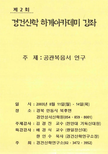 1995³â¿¡ ½ÃÀ۵Ǿî ÇöÀç±îÁö À̸£°í ÀÖ´Â °æ°Ç½ÅÇÐ ¾ÆÄ«µ¥¹Ì´Â Á¾±³°³ÇõÀÚµéÀÇ ½ÅÇлç»ó°ú °³½Å±³È¸ÀÇ ÁÖ¿ä °æ°Ç½ÅÇаú °æ°Ç¿îµ¿ÀÇ È帧À» ¼Ò°³Çϰí ÀÖ´Ù. º» ¾ÆÄ«µ¥¹Ì´Â ¸ñȸÀÚ ¹× ½ÅÇлýµé°ú Æò½Åµµµé¿¡°Ô °ÇÀüÇÑ ½Å¾Ó»ç»óÀÇ È®¸³°ú º¹À½ÁÖÀÇÀû ¼º°æÀÌÇØ ±×¸®°í °æ°ÇÇÑ »îÀÇ ½ÇõÀ» °í¹«Çϱâ À§ÇØ ÀÏÁ¶Çϰí ÀÖ´Ù.